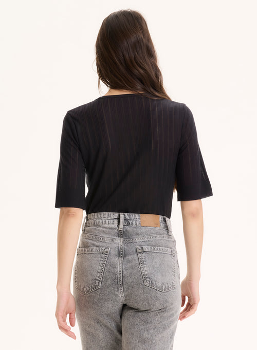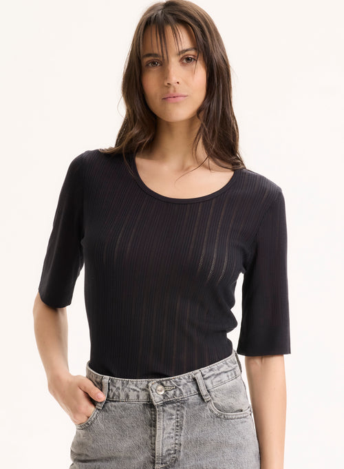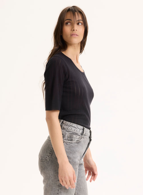 Navy Round Neck Short Sleeve T-shirt in Lyocell / Tencel