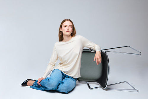T-shirt Blanc Col Bateau Manches Longues en Viscose et Elasthanne - MAJESTIC FILATURES
