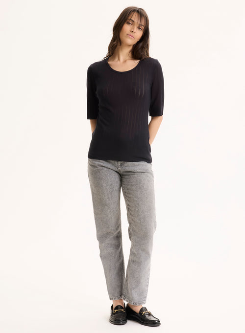 Navy Round Neck Short Sleeve T-shirt in Lyocell / Tencel