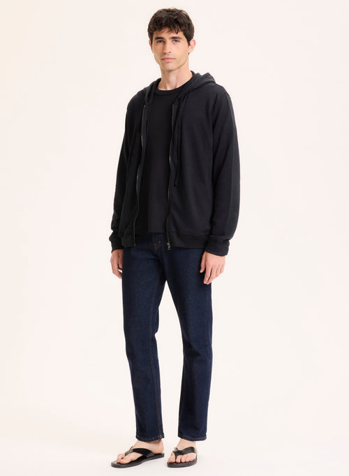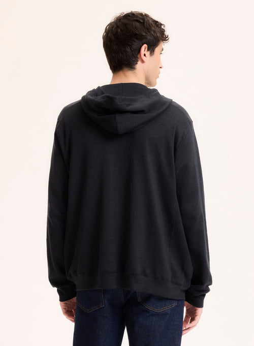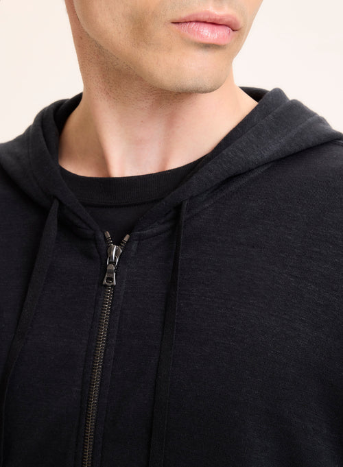 Chaleco negro con cuello de manga larga con capucha en lino / algodón orgánico