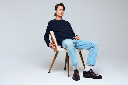 T-shirt Marine Henry Col Rond Manches Longues en Coton organique et Elasthanne